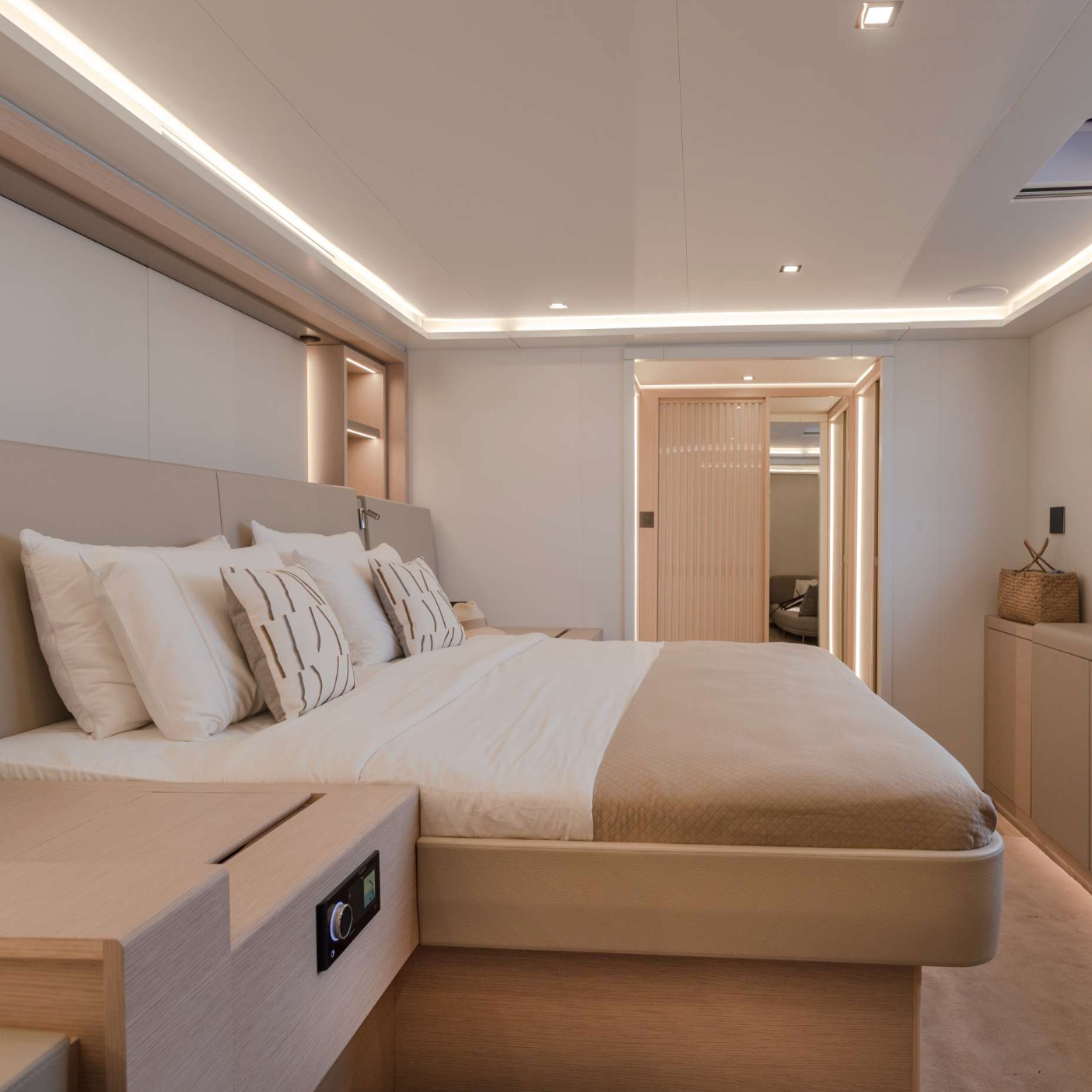 The CHRISTAL MIO 80 is a 78.7-foot luxury power catamaran built in 2026 by Fountaine Pajot, featuring 6 ensuite cabins and accommodation for up to 12 guests with a dedicated crew of 5. With premium systems like air conditioning, watermaker, generator, and an expertly equipped galley, she delivers refined comfort and sophistication for Mediterranean cruising. Expansive outdoor areas — including a bow Jacuzzi, panoramic flybridge, and hydraulic swim platform — plus a comprehensive suite of water toys such as SeaBobs, E-Foil, SUPs, and more, make CHRISTAL MIO 80 ideal for family charters, group voyages, or bespoke cruising adventures.