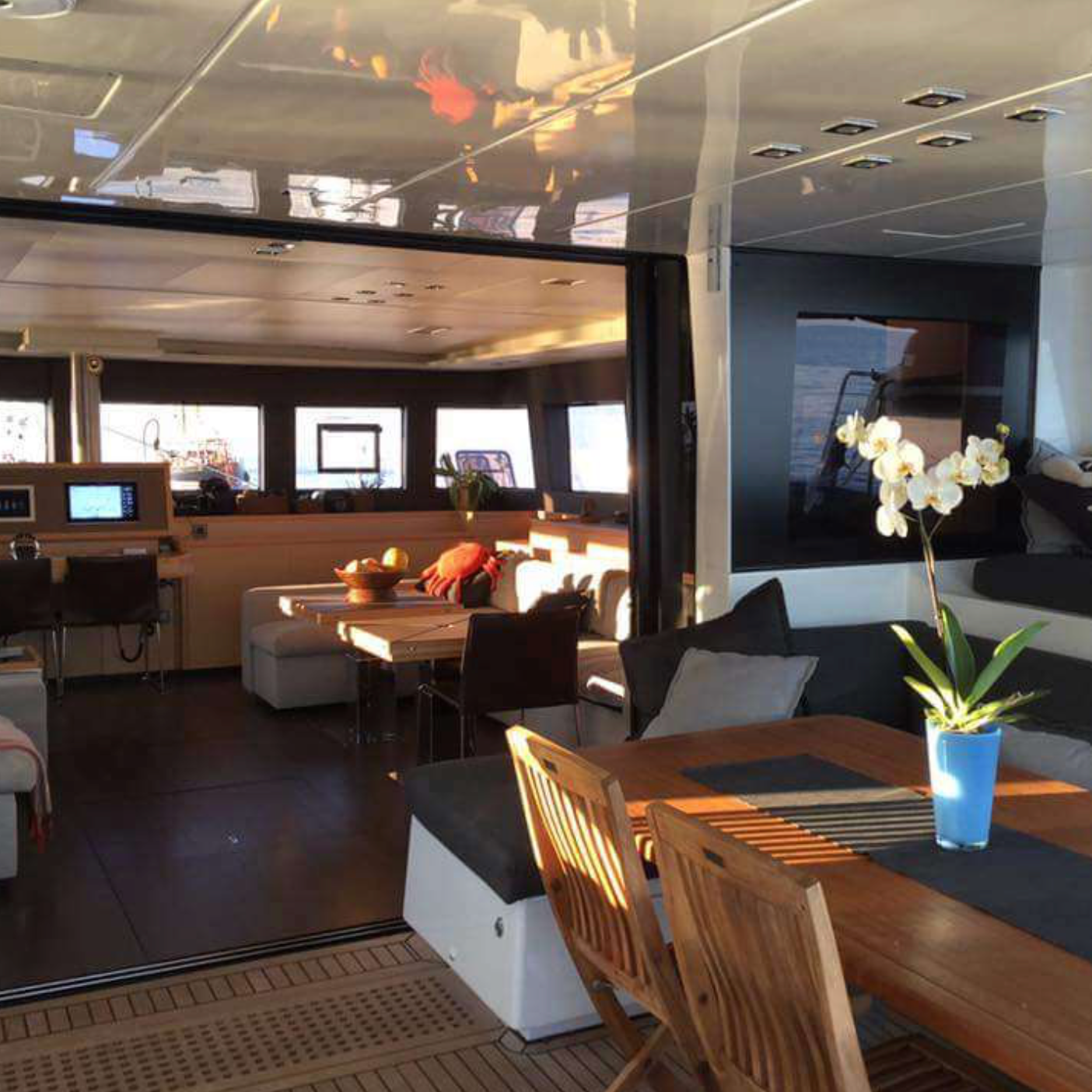 - Spacious saloon with panoramic views and dining area