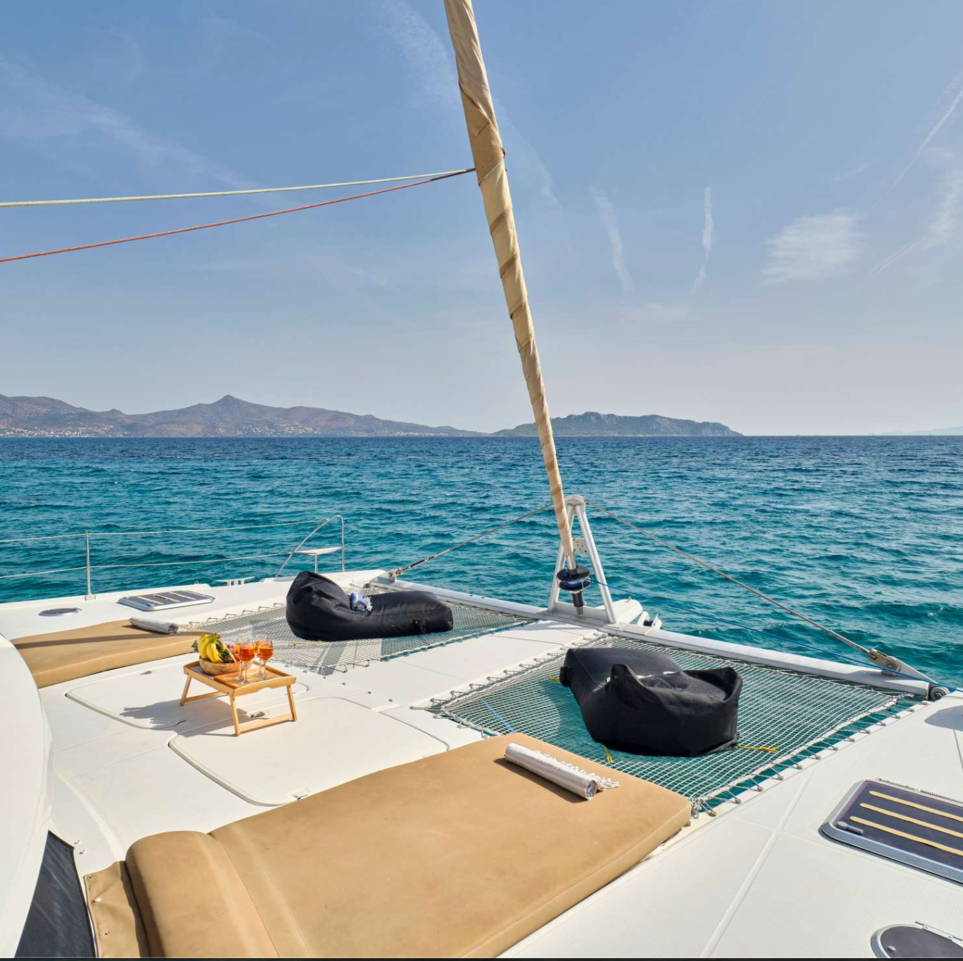 The Fountaine Pajot Sanya 57 “HIGH FIVE” is a 57-foot luxurious sailing catamaran built in 2013 and refitted in 2017, offering 5 air-conditioned cabins and accommodation for up to 10 guests. With premium amenities including air conditioning, generator, watermaker, and a fully equipped galley, HIGH FIVE delivers comfort and sophistication for coastal cruising. Spacious indoor and outdoor living areas, plus an extensive suite of water toys (kayaks, wakeboard, SUPs, tubes, and snorkeling gear), make it ideal for family charters, group voyages, and memorable weekends in the Greek islands.