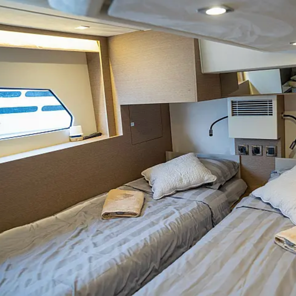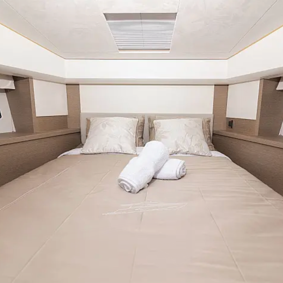 This layout offers comfortable accommodation for up to 6 guests, featuring a full-beam master cabin, well-appointed guest cabins, and two bathrooms, ensuring privacy and comfort for extended cruising.