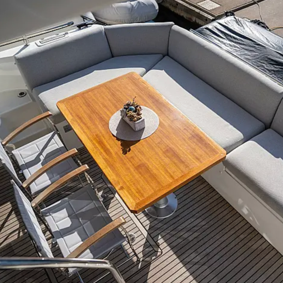- Teak cockpit with outdoor dining and lounging area