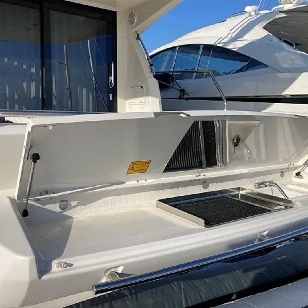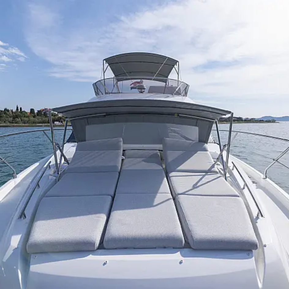 - Spacious flybridge with sun pads and seating